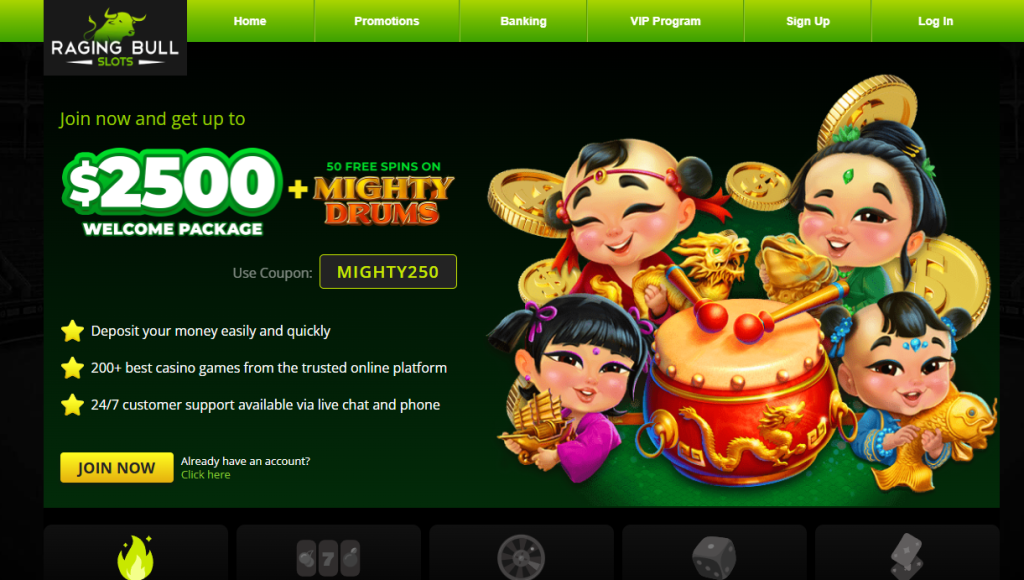 - Raging Bull – Big welcome bonuses, free spins, and options for online sports betting.